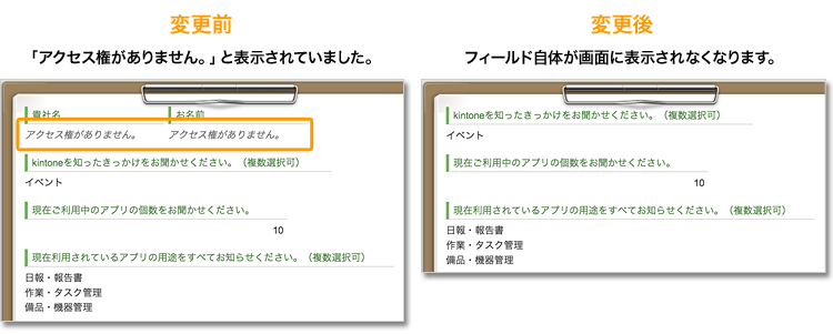 閲覧する権限がないフィールドは、画面に表示されなくなります。