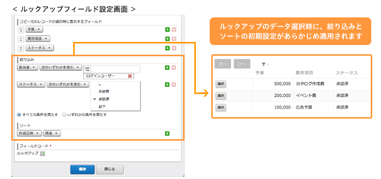 ルックアップ時に表示されるレコードをあらかじめ絞り込むことが可能になり、データ入力時の簡便性が向上しました。
