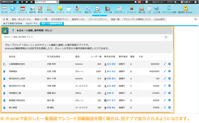ガルーンのポータルに、iframeを使ってkintoneのレコード一覧を表示させる際に、新デザインのレコード一覧を表示できるようになりました。