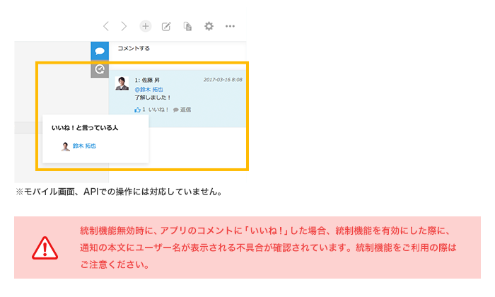 アプリのレコードコメントで「いいね!」できるようになりました。