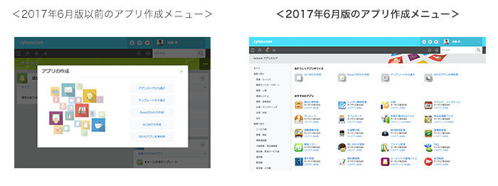 「アプリの作成」メニューがアプリストアと融合した画面になりました。