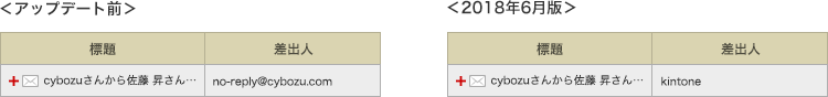 メール通知など、cybozu.comから送信されるメールの送信者名を「kintone」にしました。