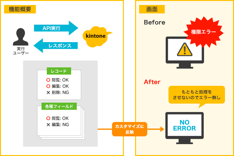 アプリのレコードとフィールドに対する、実行ユーザーのアクセス権を取得するAPIが追加されます。