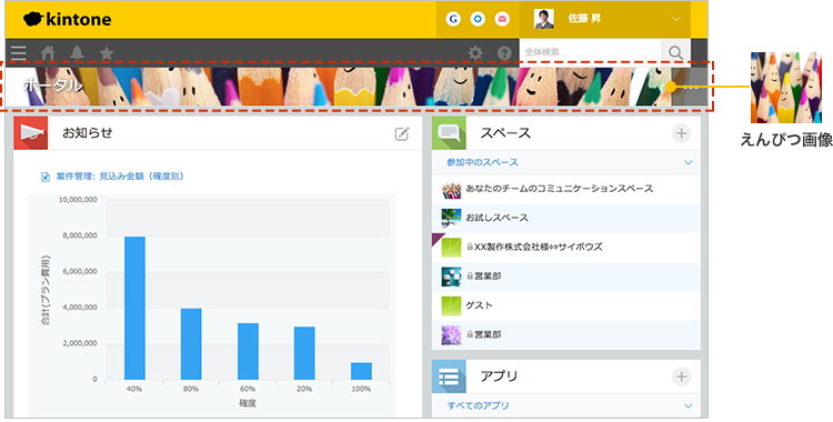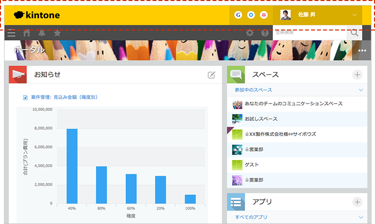kintoneのヘッダーの色をオレンジ、ロゴをkintone製品ロゴに変更しました。