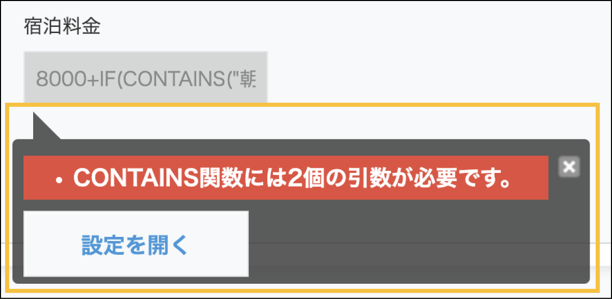 間違った計算式を入力した際、計算式の入力箇所の下部にメッセージが表示されます。