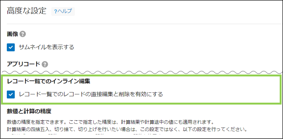 「レコード一覧でのレコード編集・削除を利用選択できる機能」を有効にする