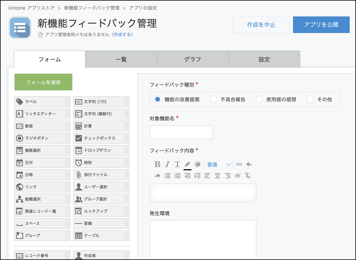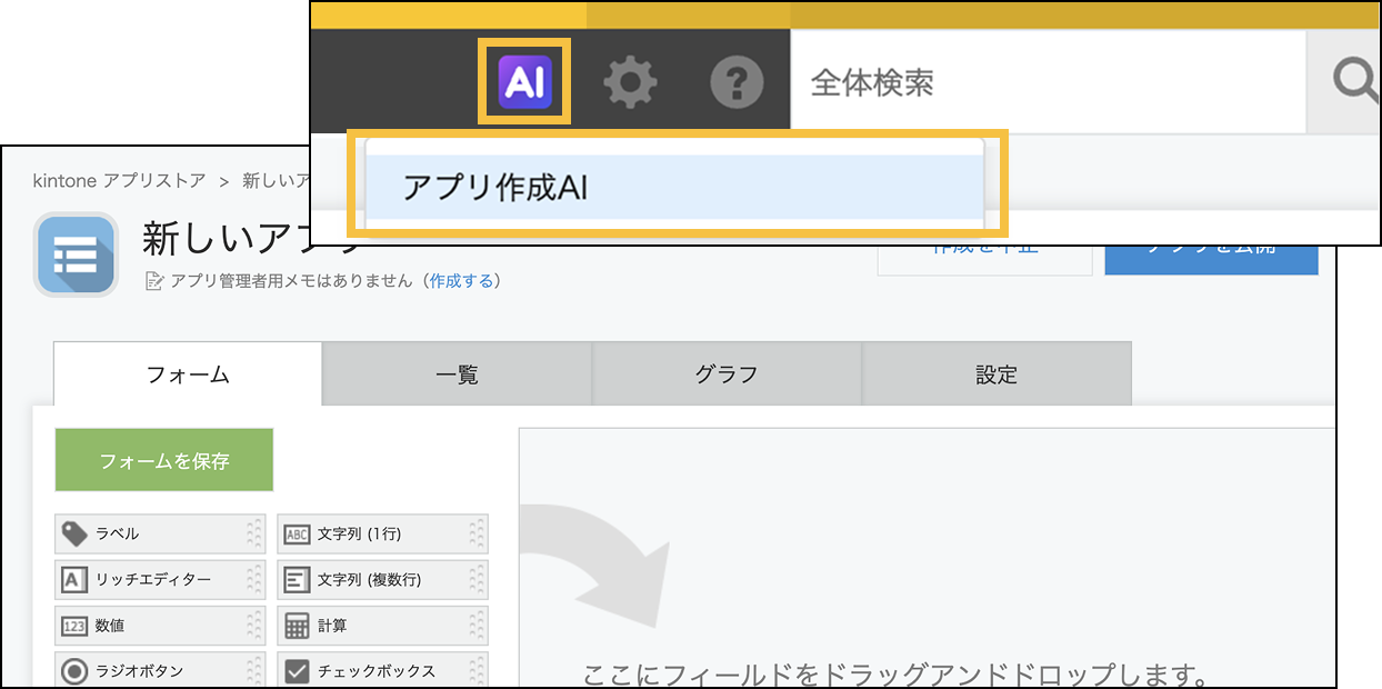 | アプリ作成AI | AIと対話しながらフォーム作成を進められる機能 |