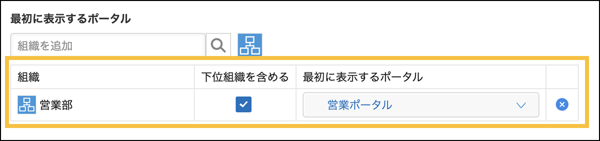 2枚目以降のポータルの中から、利用者に最初に表示されるポータルを組織ごとに設定できます。設定が行われていない組織に所属するユーザーには、これまで通り1枚目のポータルが最初に表示されます。