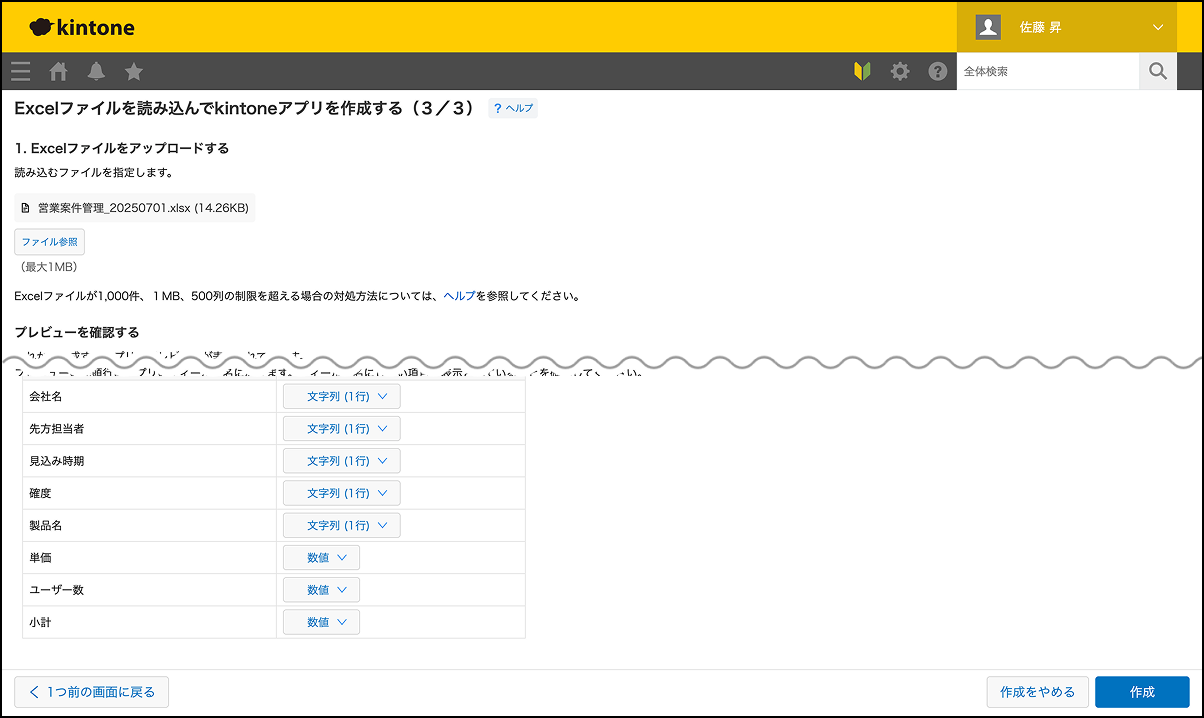 刷新後の「Excelを読み込んで作成」画面(※開発中の画面です)