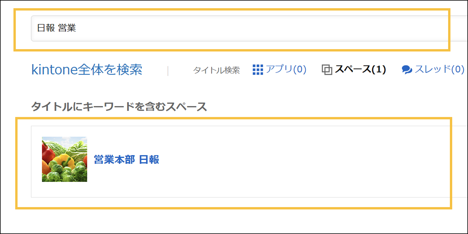 「日報」と「営業」の両方をスペース名に含むスペースが、検索結果に表示されるようになります。