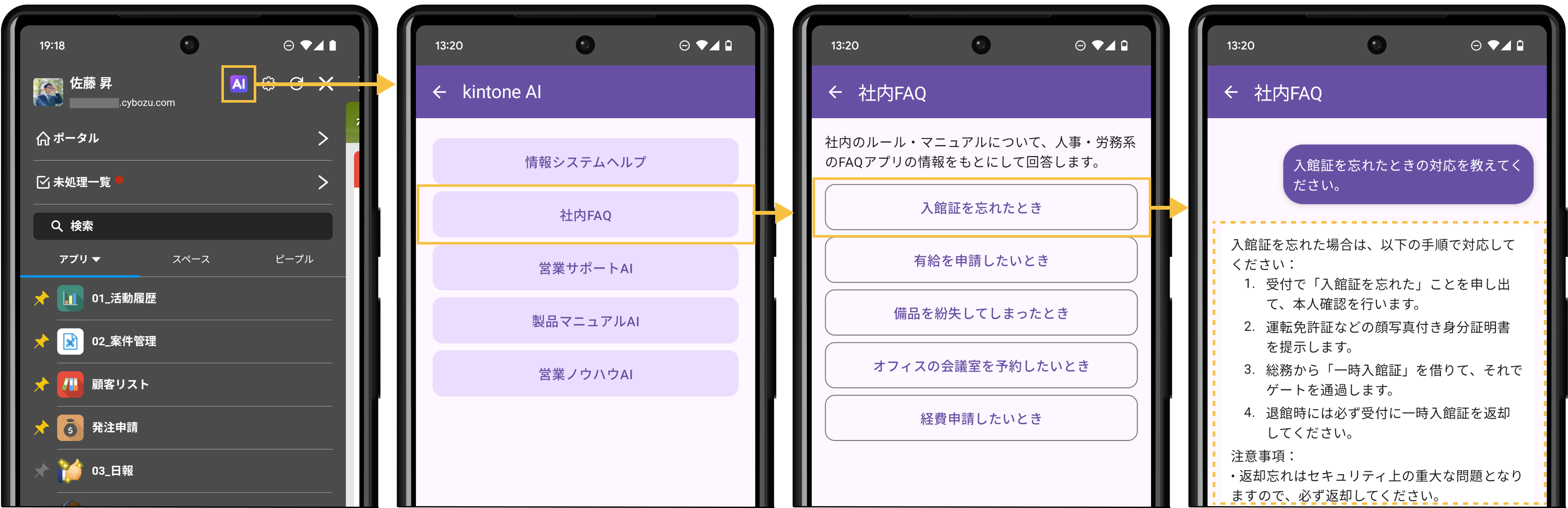 iOS版およびAndroid版のkintoneモバイルアプリで、kintone AIラボにて提供中の「検索AI」で作成されたチャットボットが利用可能になりました。今後は、モバイル環境からもAI機能を活用して、 kintoneをご利用いただけます。