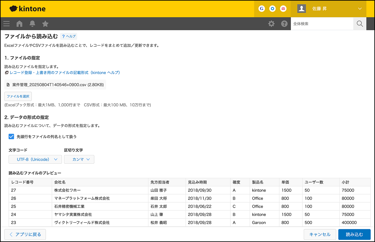kintone開発チームでは、今後の製品改善スピードをさらに高めるため、リリース当初から使用してきたフロントエンド技術基盤の刷新を、各種画面で順次進めています。今回、新たに「ファイルから読み込む」画面の各種画面のフロントエンド基盤が刷新され、それにあわせてレイアウト・パーツも一部変更されています。